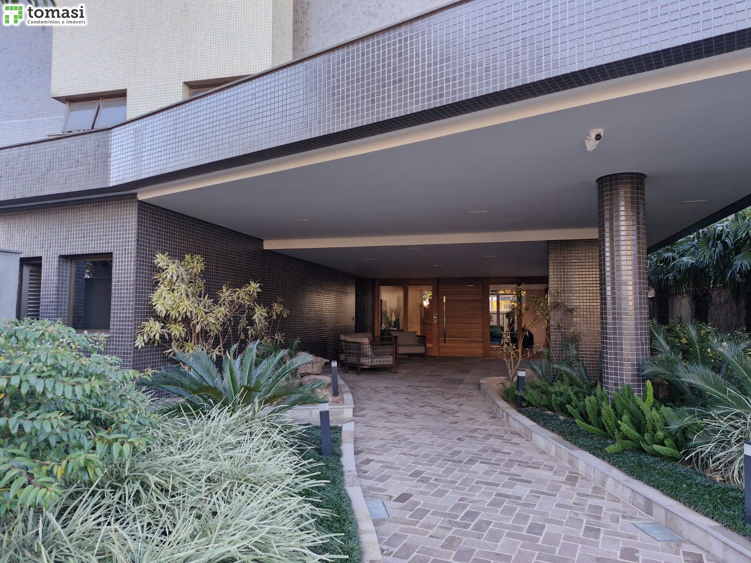 Prédio todo pastilhado.