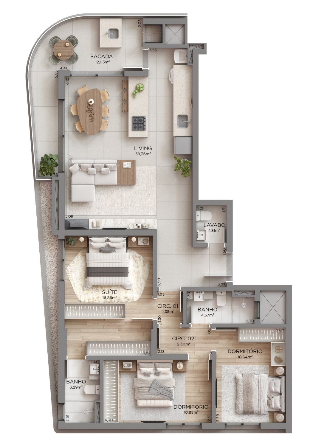 Os apartamentos do Bosco terão acabamentos de qualidade, tendo como principais características: