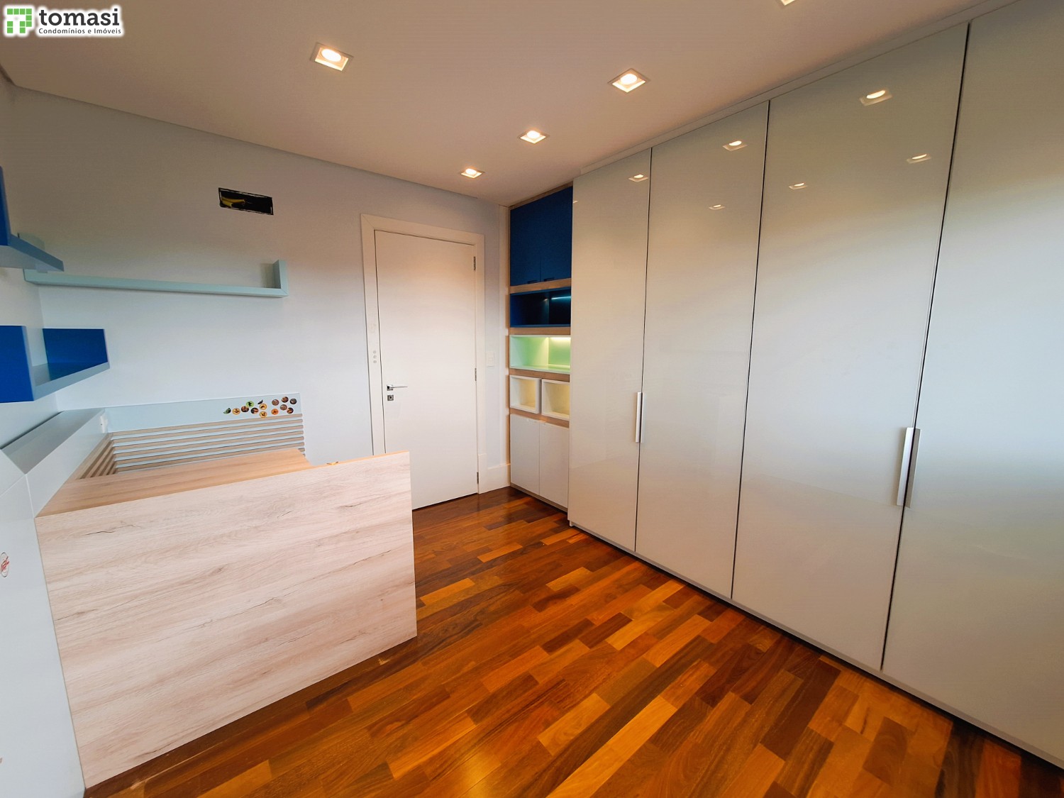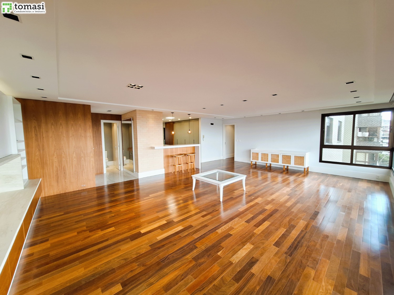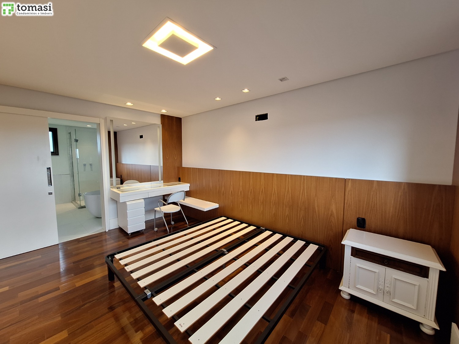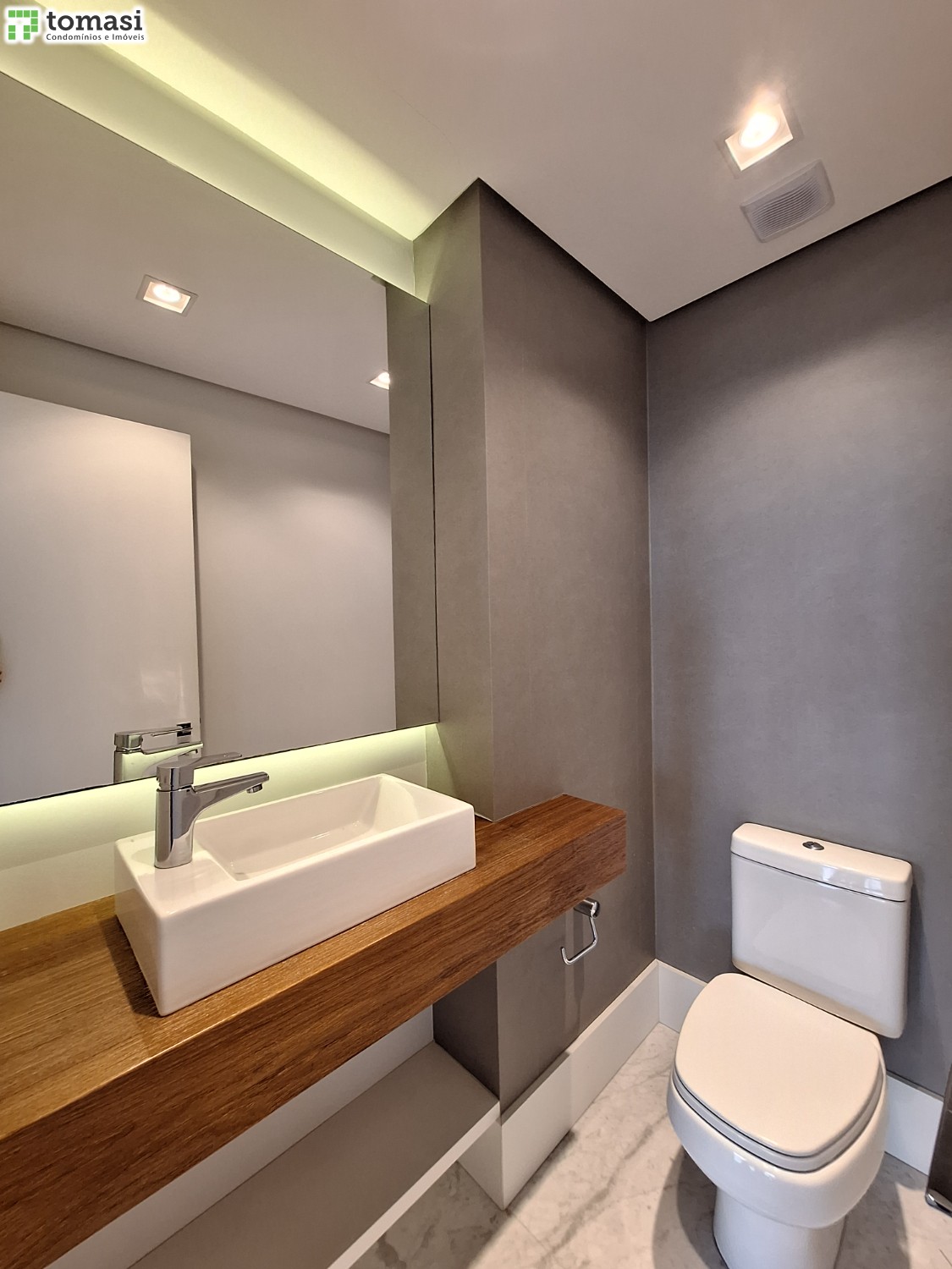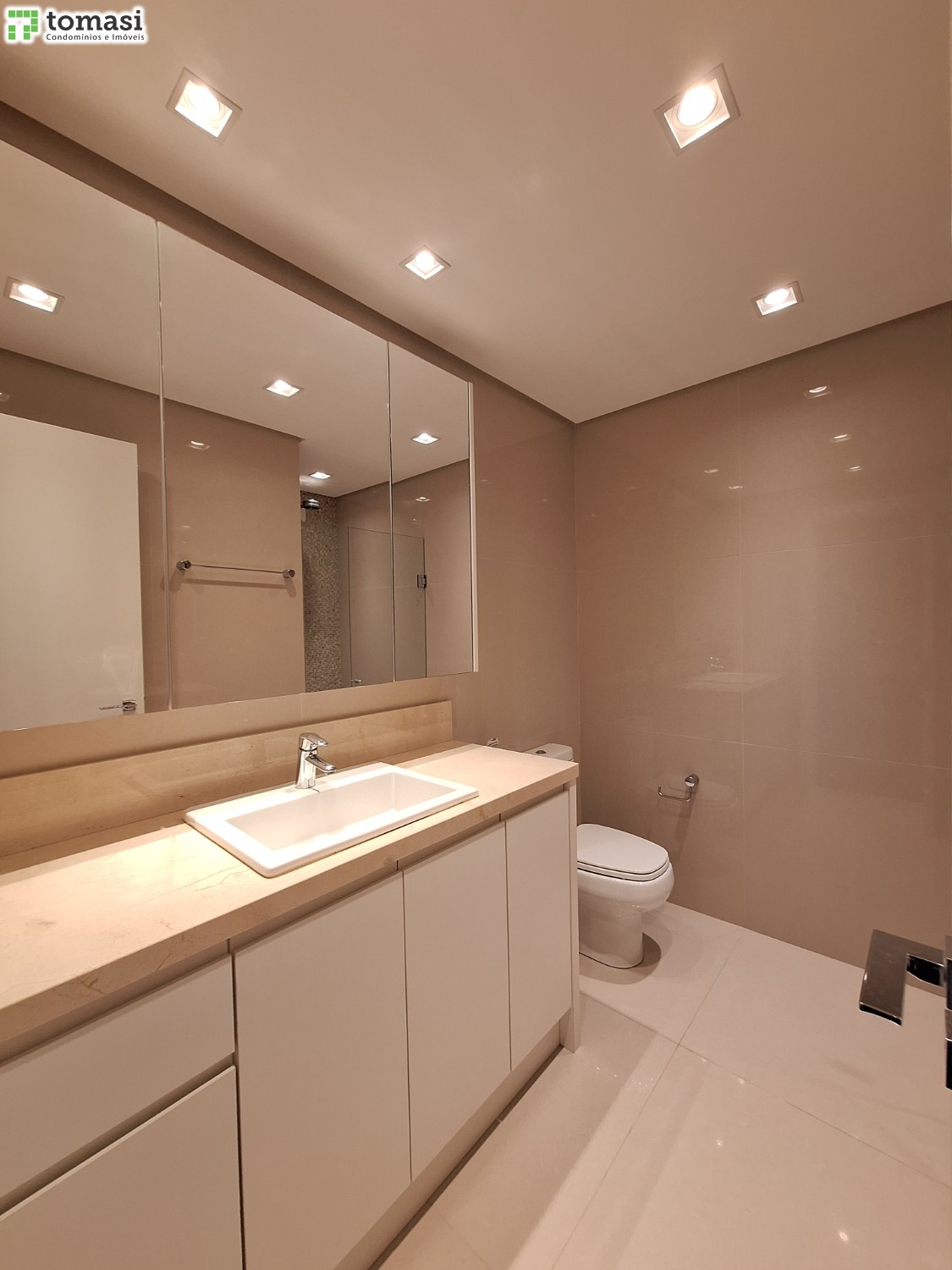 - Acabamento premium: porcelanato em áreas úmidas e laminado no restante.