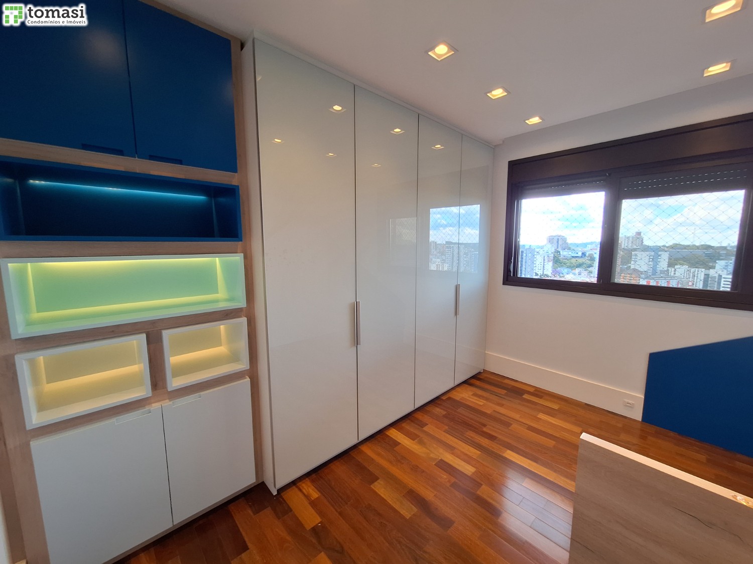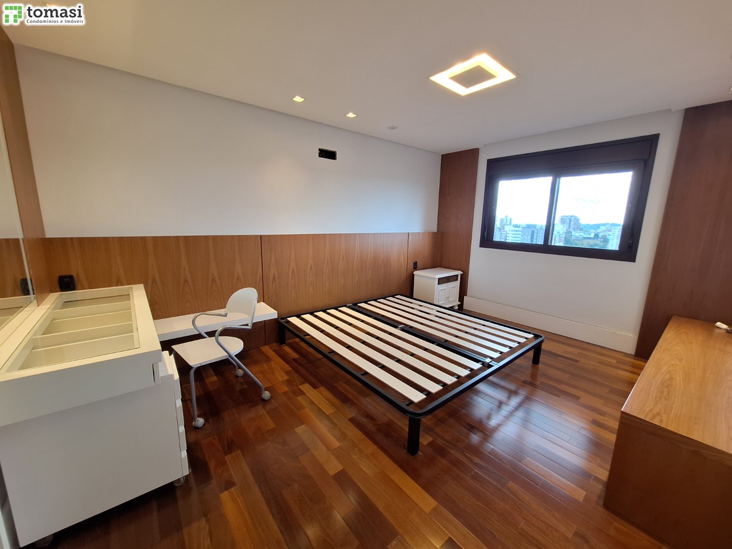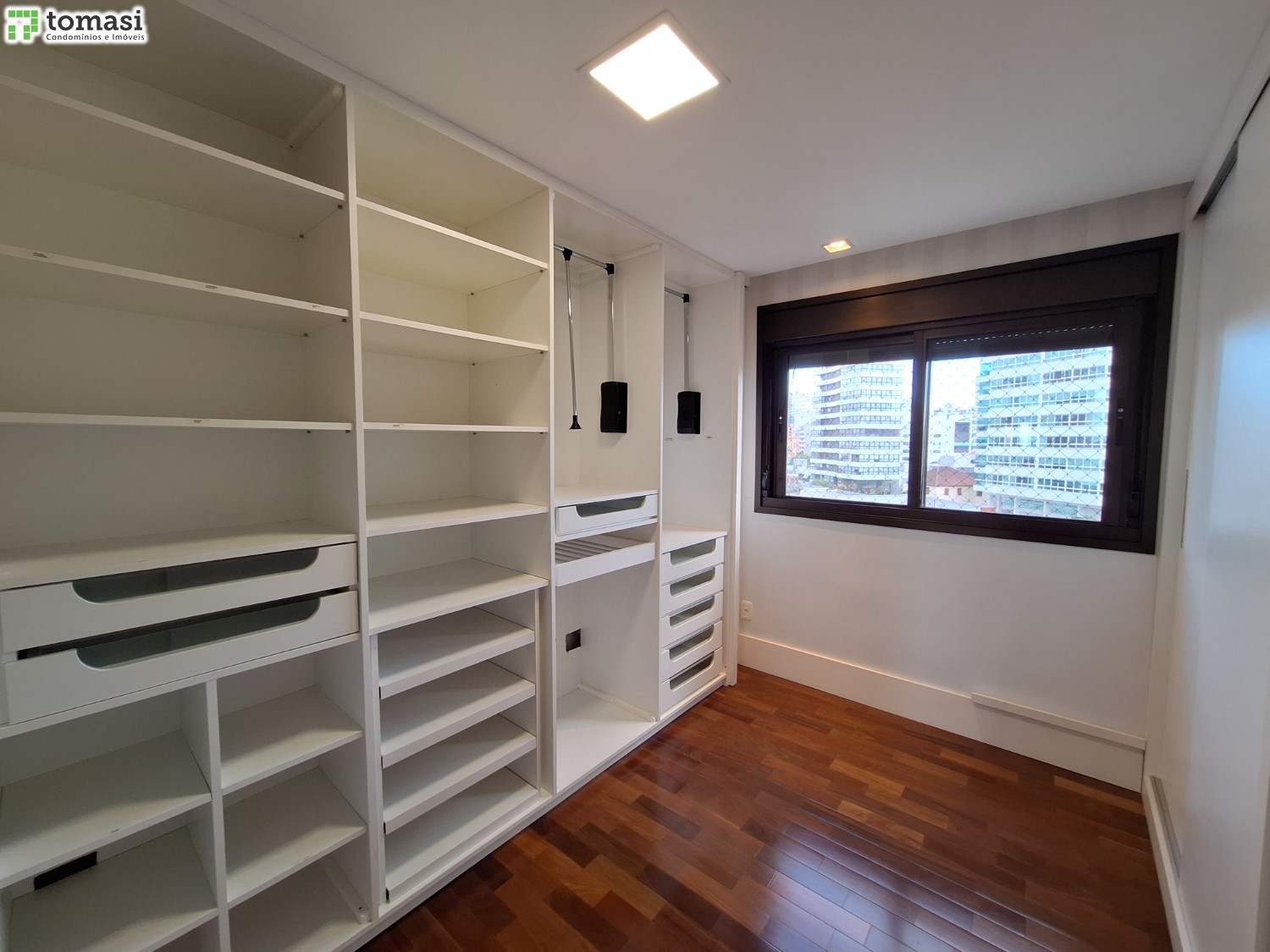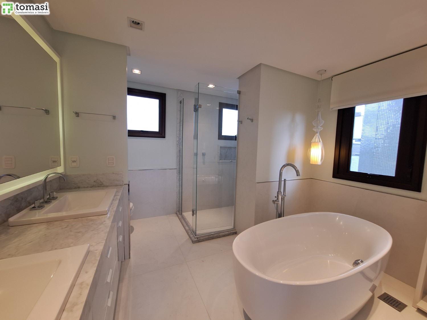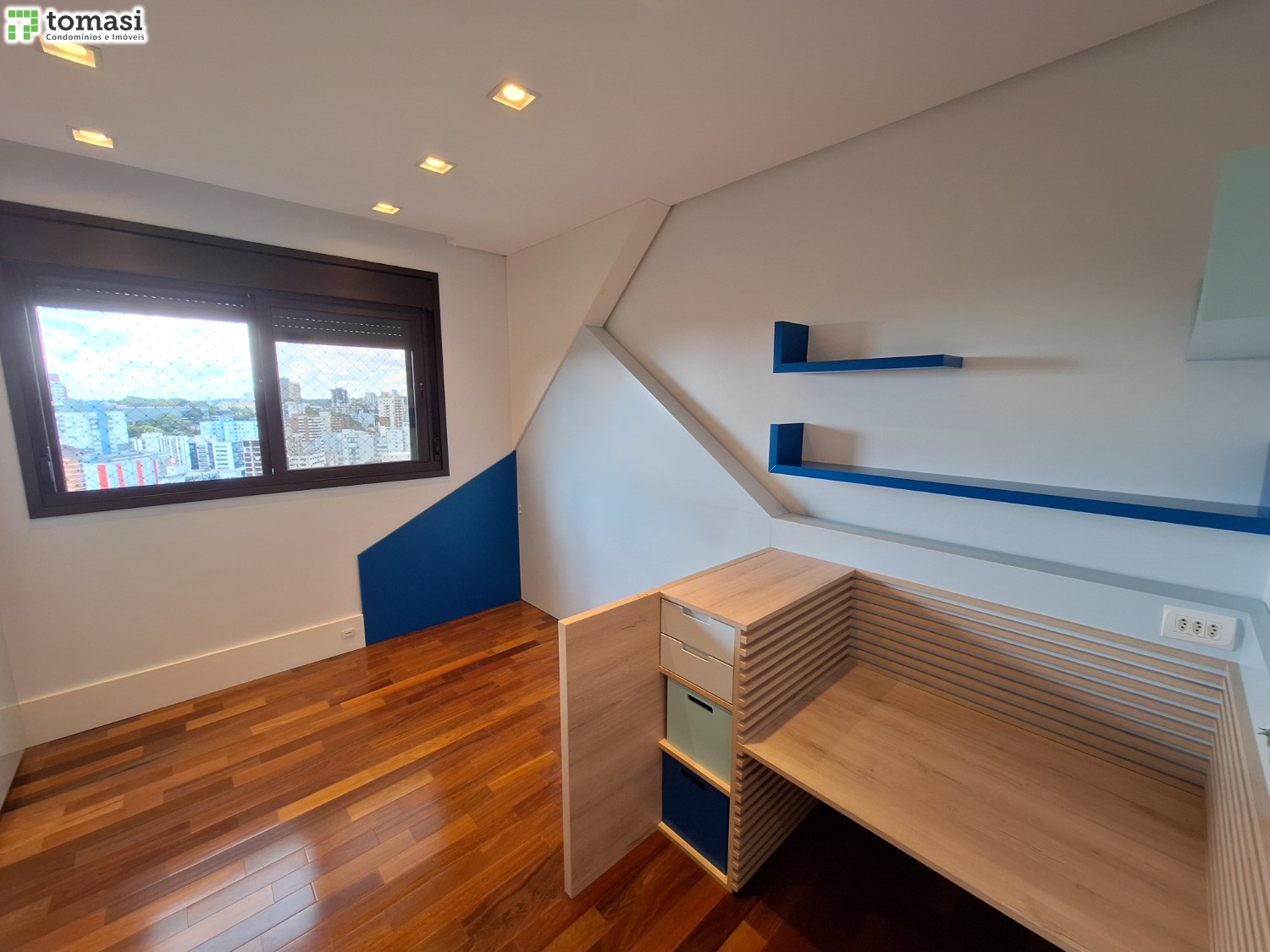 - Acabamento premium: porcelanato em áreas úmidas e laminado no restante.