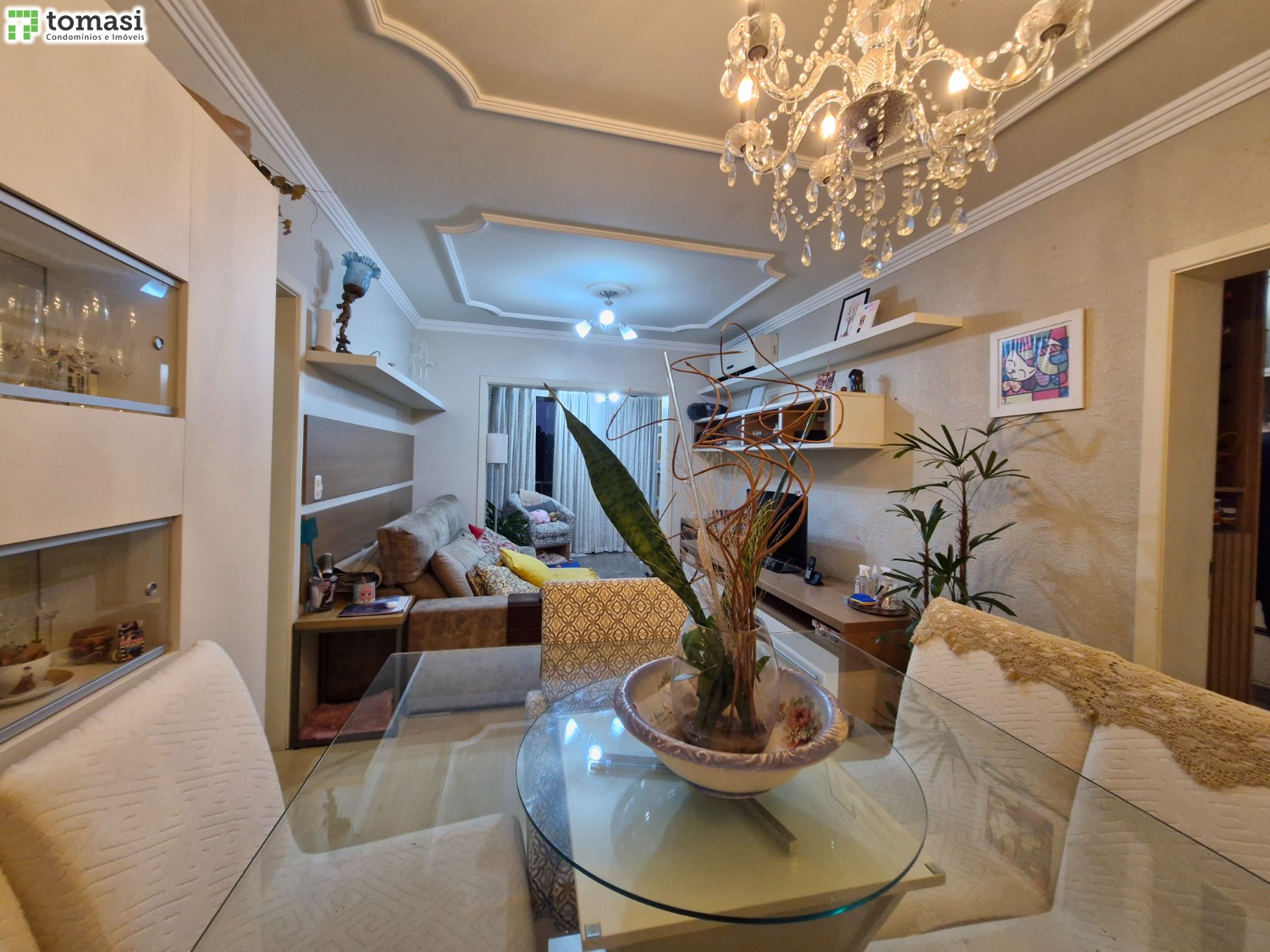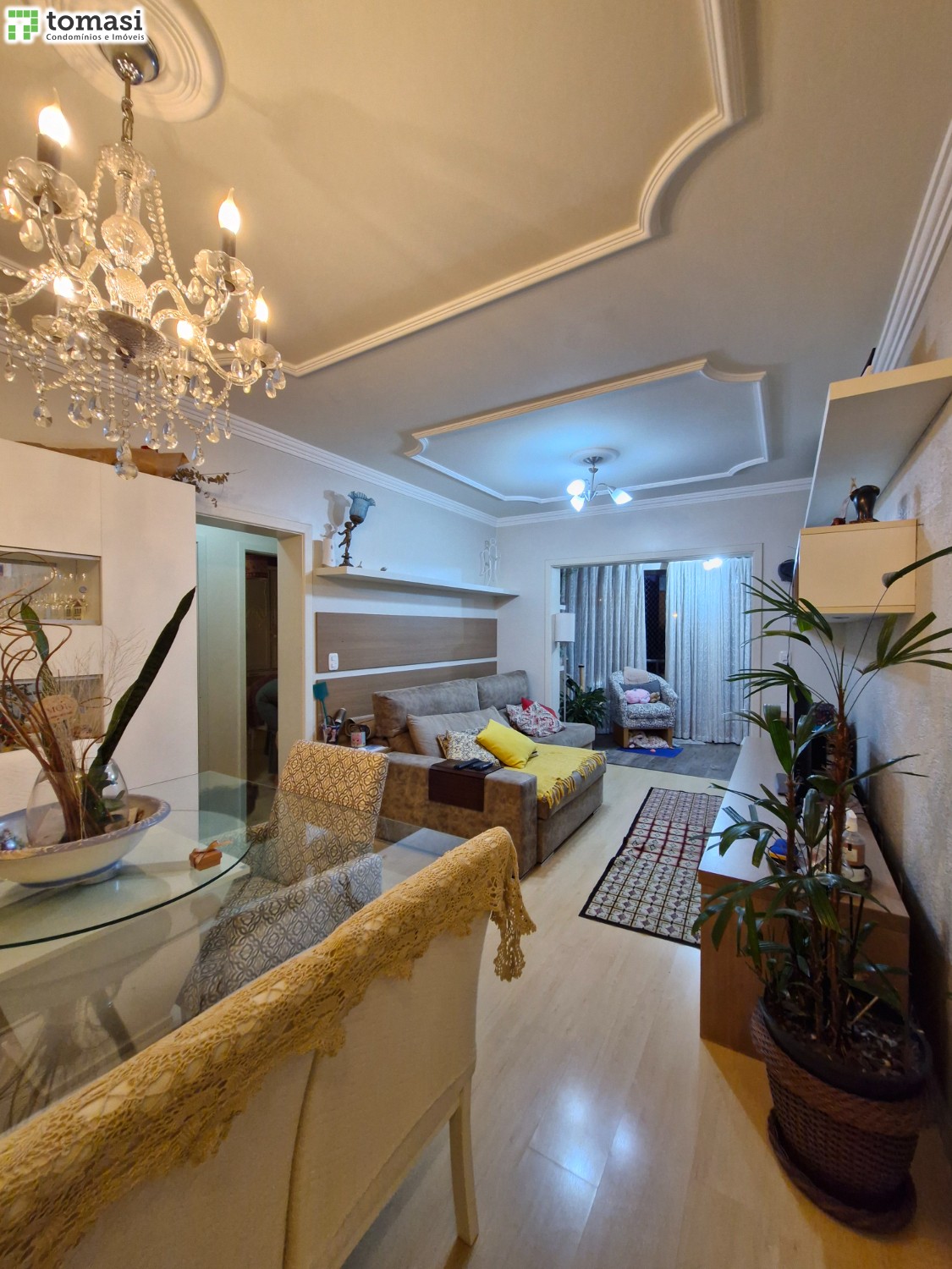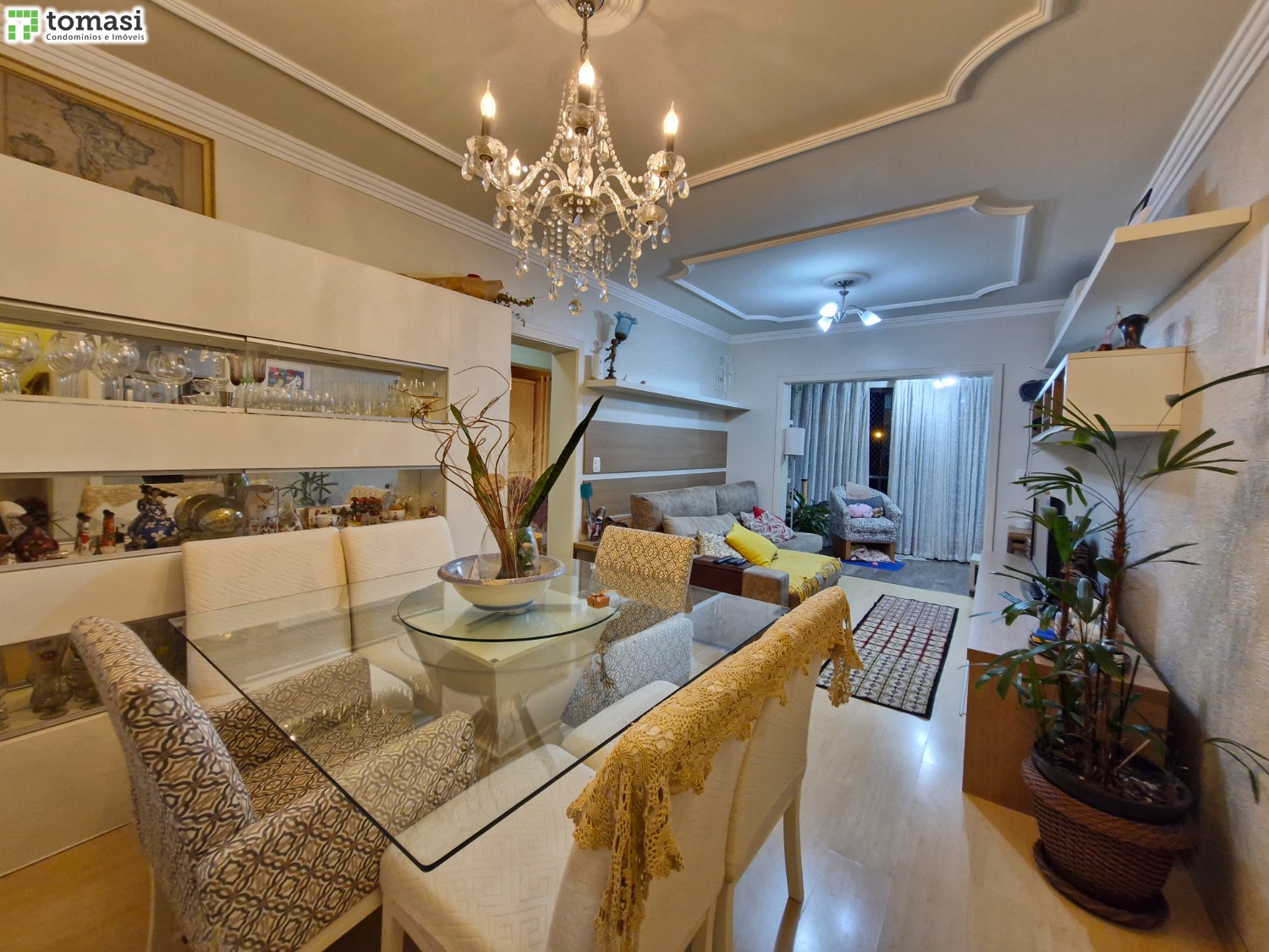 O apartamento possui 03 dormitórios sendo um deles suíte, sala de estar e jantar, cozinha, área de serviço, banheiro social e 02 boxes de garagem.